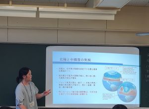 講義タイトル「氷に覆われた北極で海洋物理学者がどのように観測・生活し、そして自然と向き合っているのか」について、先日まで乗船していたポーラーシュテルンでの観測時のエピソードを交え講義を行いました。